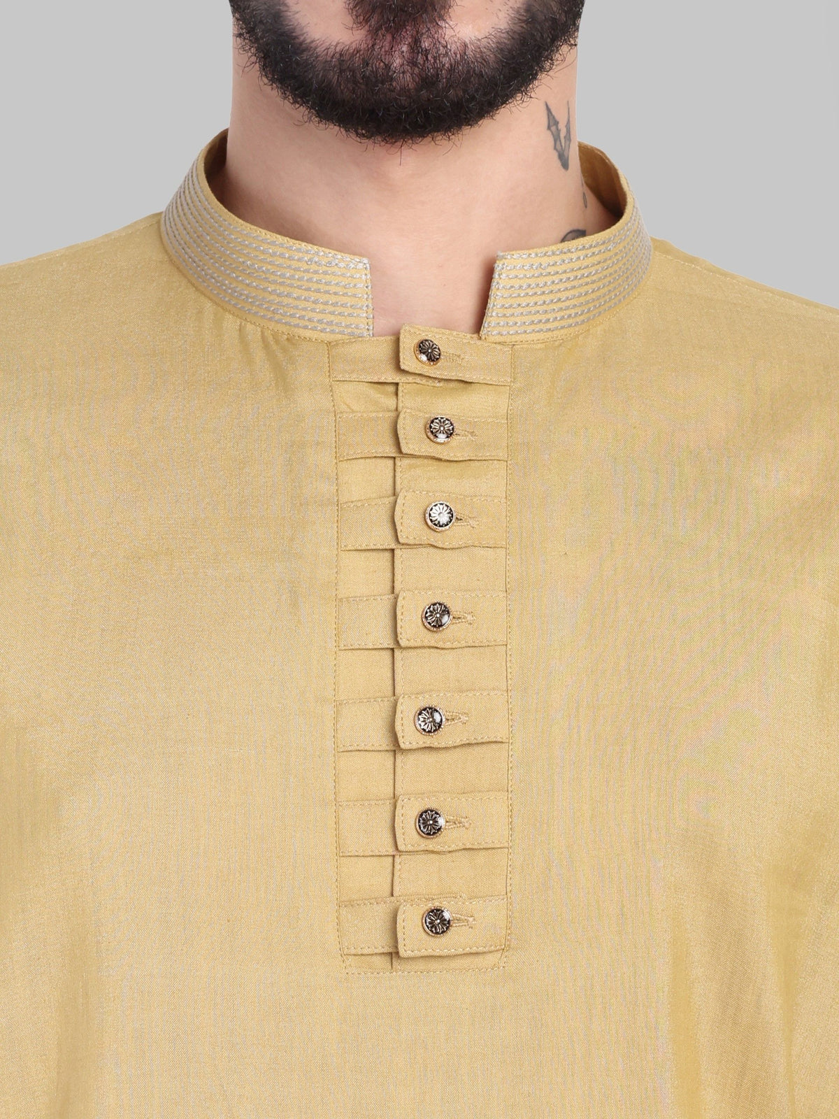 Model is wearing size M Kurta (height: 6'1" for reference). Each Kurta comes with extra margin for a perfect fit through alterations. Please note, the colour may vary slightly due to screen and camera settings.